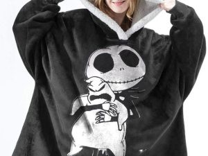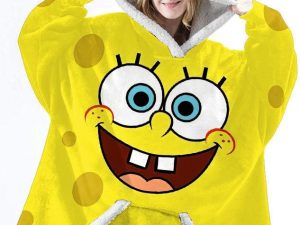 Unisex Cute Cartoon Oversize Flannel Hoodie Blanket