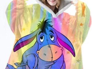 Unisex Cute Cartoon Oversize Flannel Hoodie Blanket