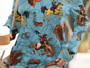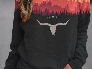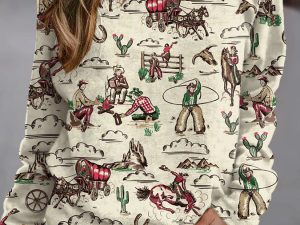 Women’s Western Horse Print Long Sleeve Sweatshirt