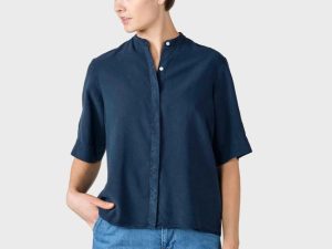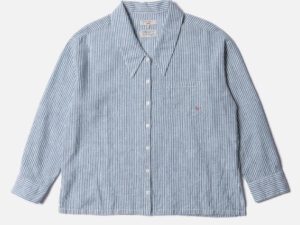 Lovingscarf Indigo Striped Shirt blue offwhite
