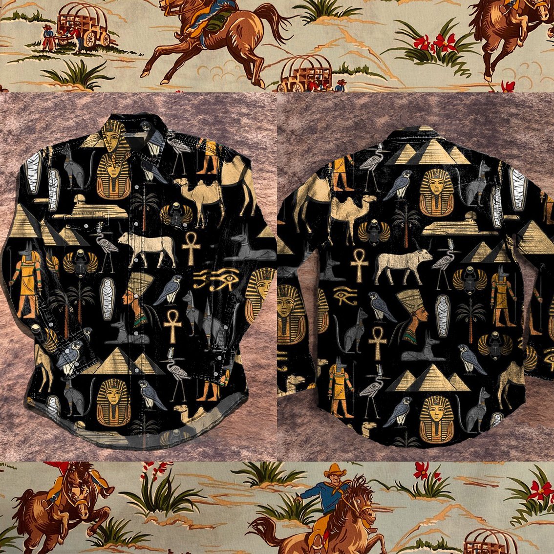 Camel Pattern Vintage Stripe Print Casual Shirt