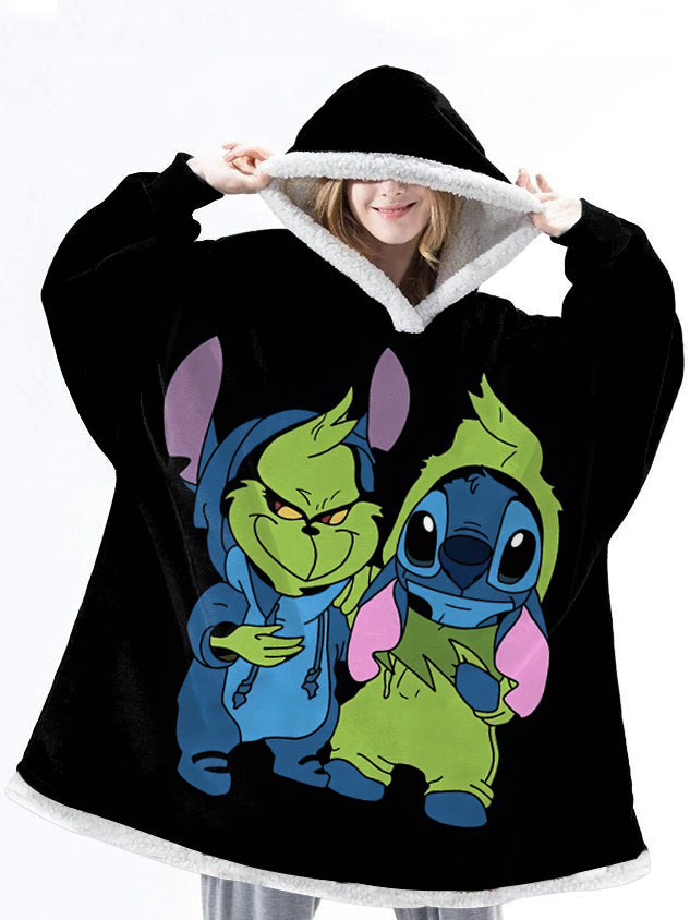 Cute Cartoon Oversize Flannel Hoodie Blanket