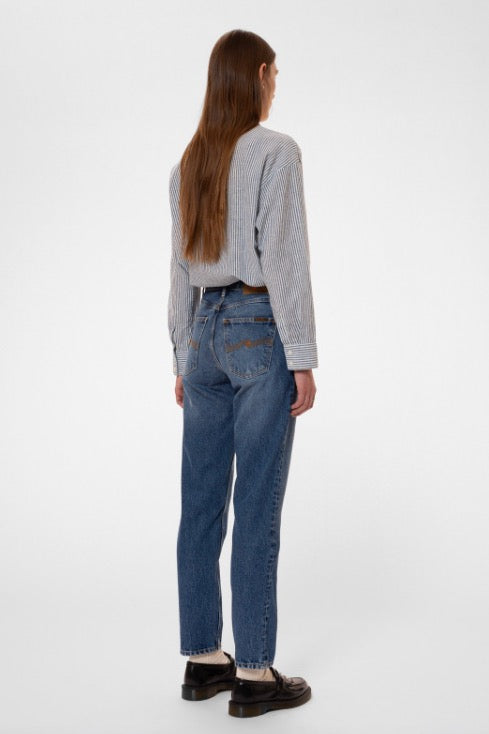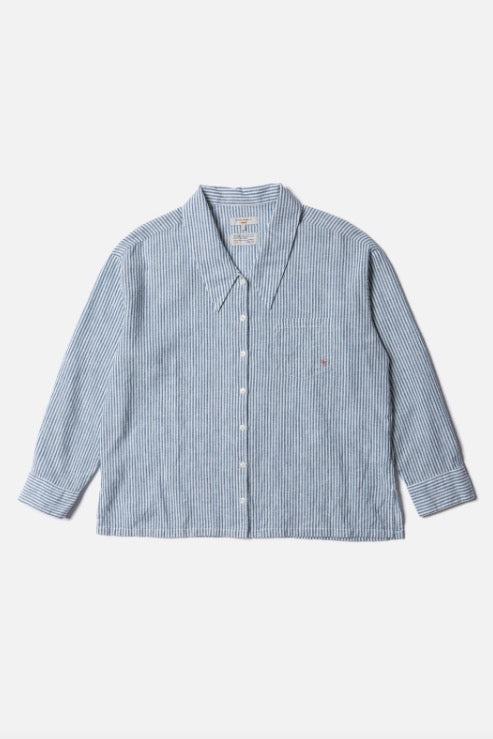 Lovingscarf Indigo Striped Shirt blue offwhite