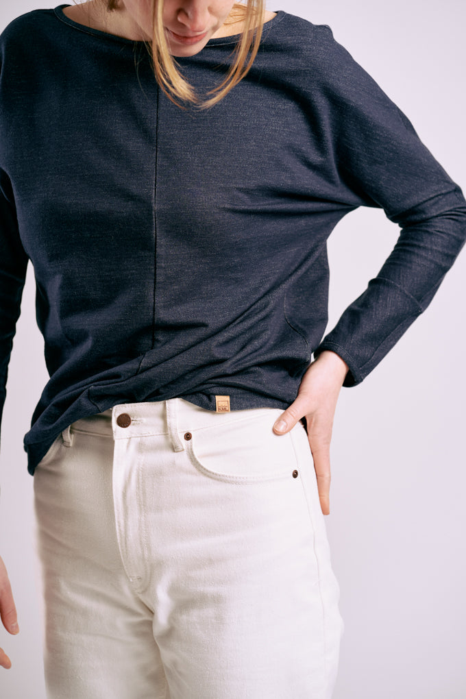 Komfortabler und unkomplizierterLangarm-Sweater mit einem dekorativen, kupferfarbenen YKK-Zip-Verschluss im Nacken